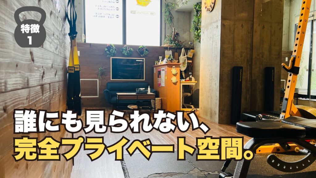 BANANA FITNESSは、完全個室プライベート空間になっており、他の人に見られたりせず、集中してトレーニングができます。