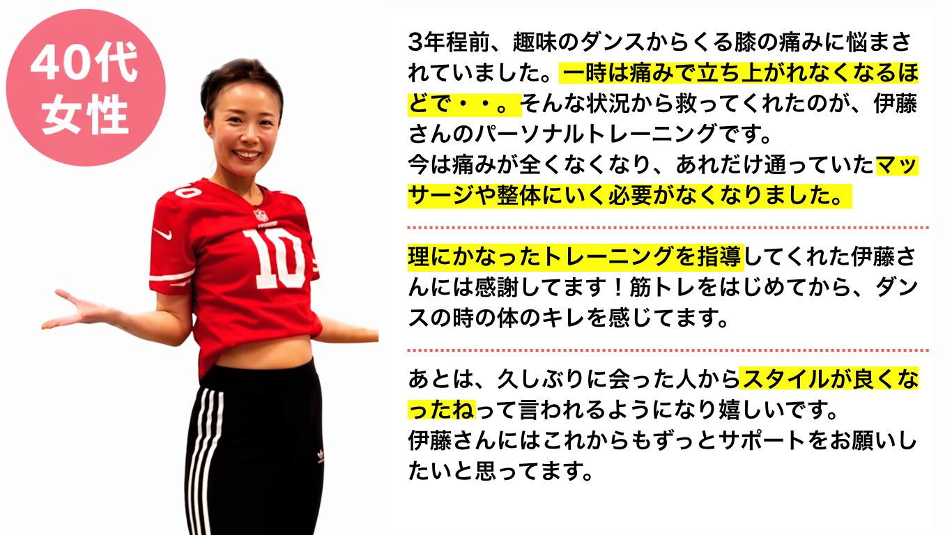 月経、骨格の悩みに対して「女性トレーナーに相談したい」と思われる方も多くいらっしゃいます。ご要望に合わせて、女性トレーナーでの対応可能です。
