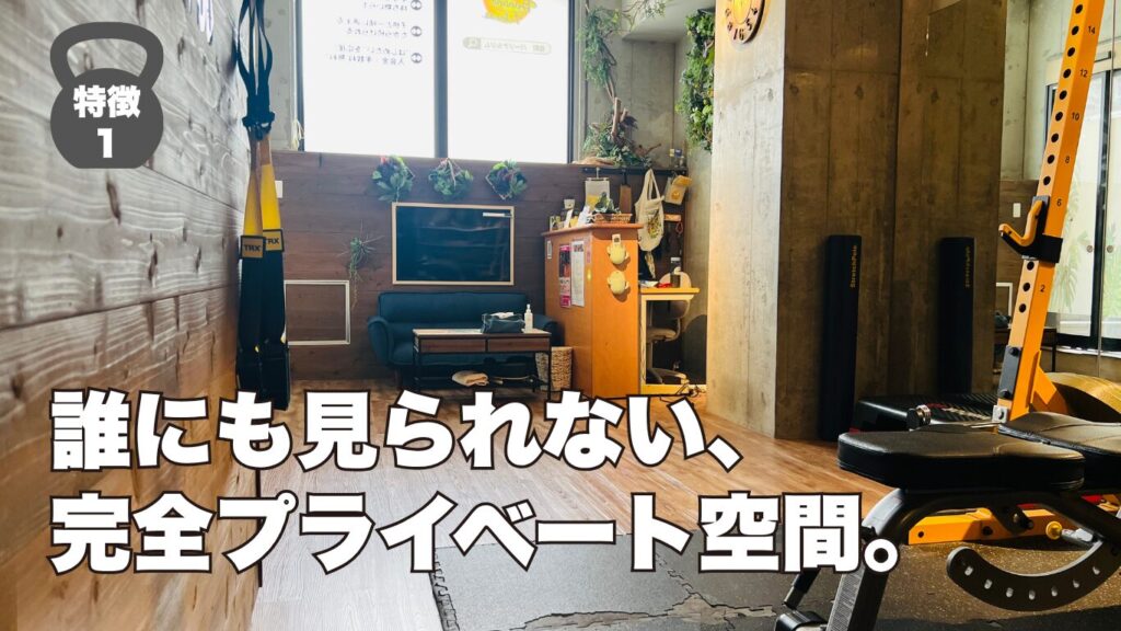 「人に運動している姿を見られたくない」「トレーニング中に話かけられたくない」、その声に応えるようあなただけの完全個室プライベート空間を作っています。